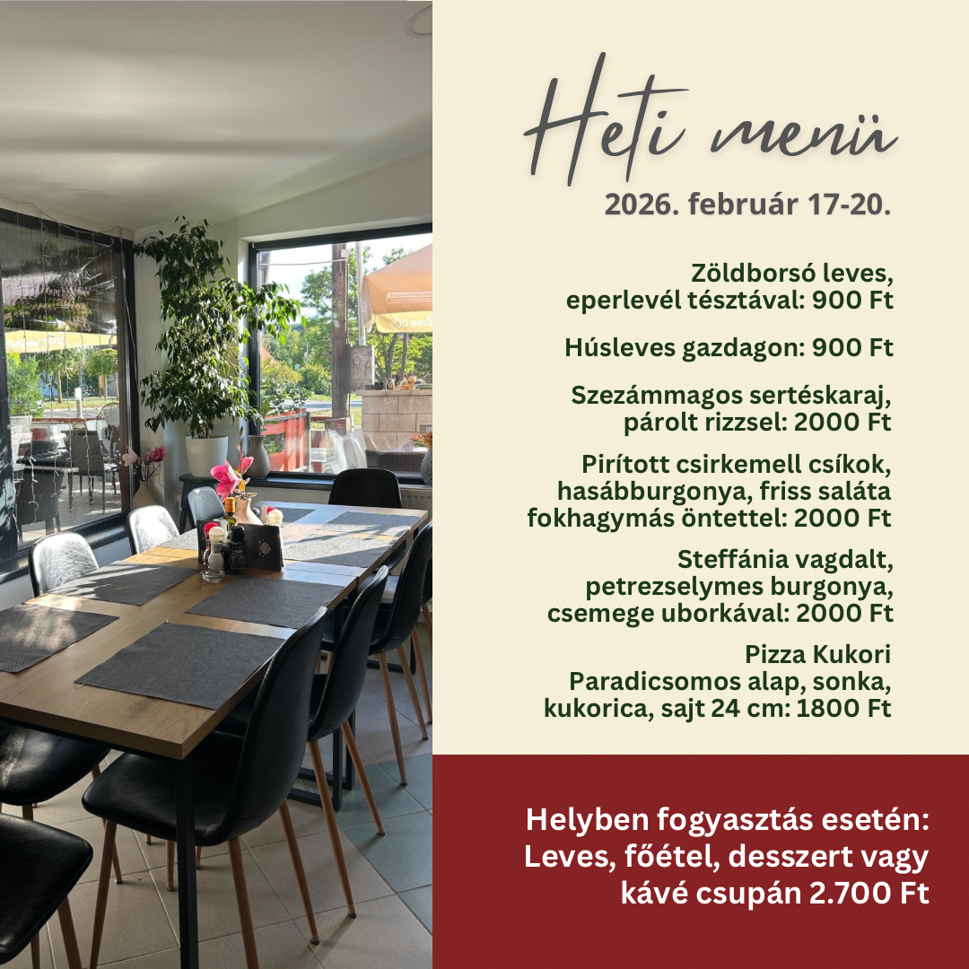 Éttermünk helyszínéül szolgálhat családi, baráti összejöveteleknek vagy randevúknak. Az ételek választéka nem hagy kivetni valót maga után, ahogyan az ízek sem! Vendégeinket folyamatosan meglepjük új fogásokkal, így lépést tartva a trendekkel! Vitathatatlanul családbarát hely vagyunk. A legkisebb vendégeink színezhetnek, társasozhatnak, vagy kikapcsolódhatnak játszóterünkön, amíg a finom falatok készülnek. A nagyobbakat sem hagyjuk szórakozási lehetőség nélkül, ők csocsózhatnak!
