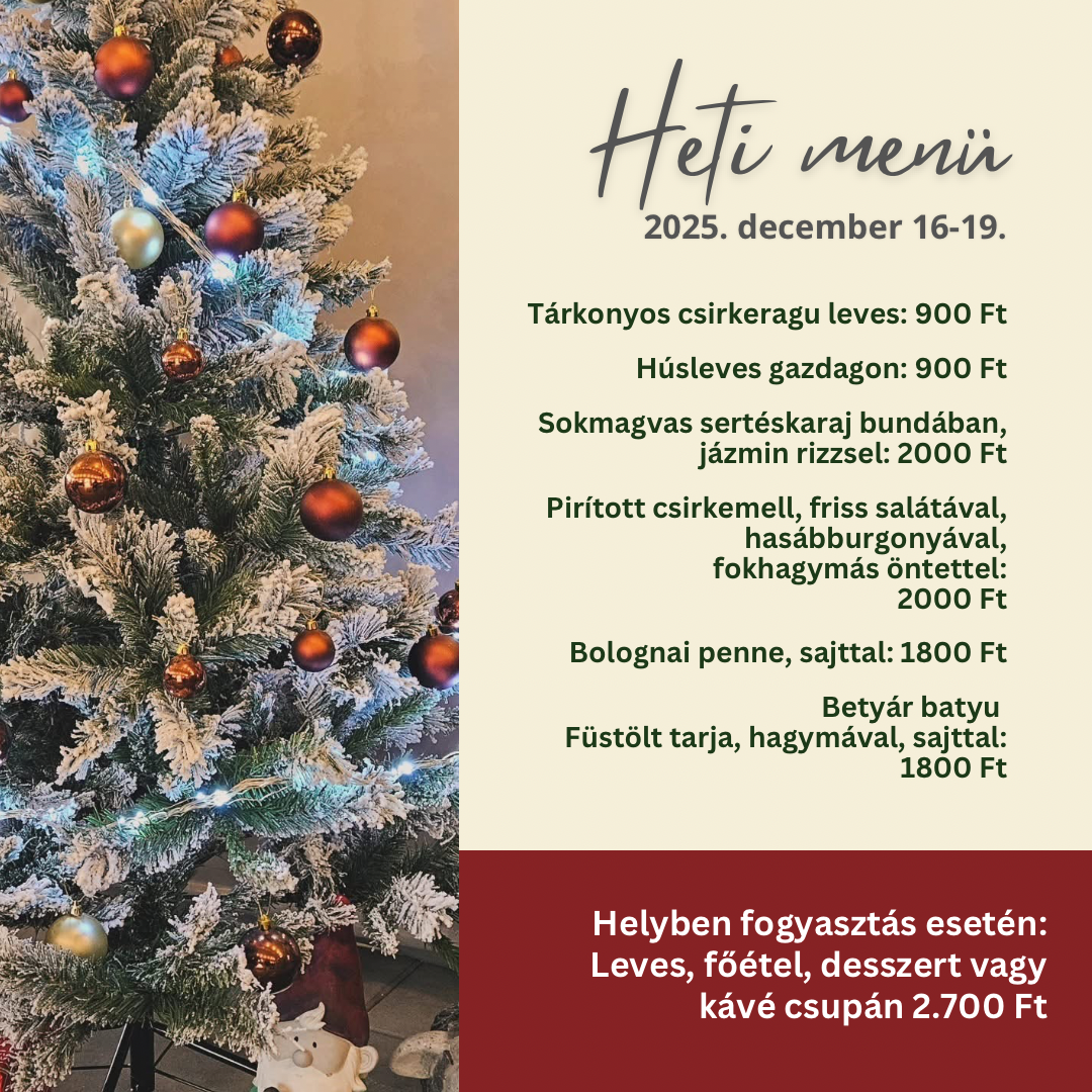 Extra kedvezmény: Szállóvendégeink 10% kedvezményt kapnak éttermünkben!