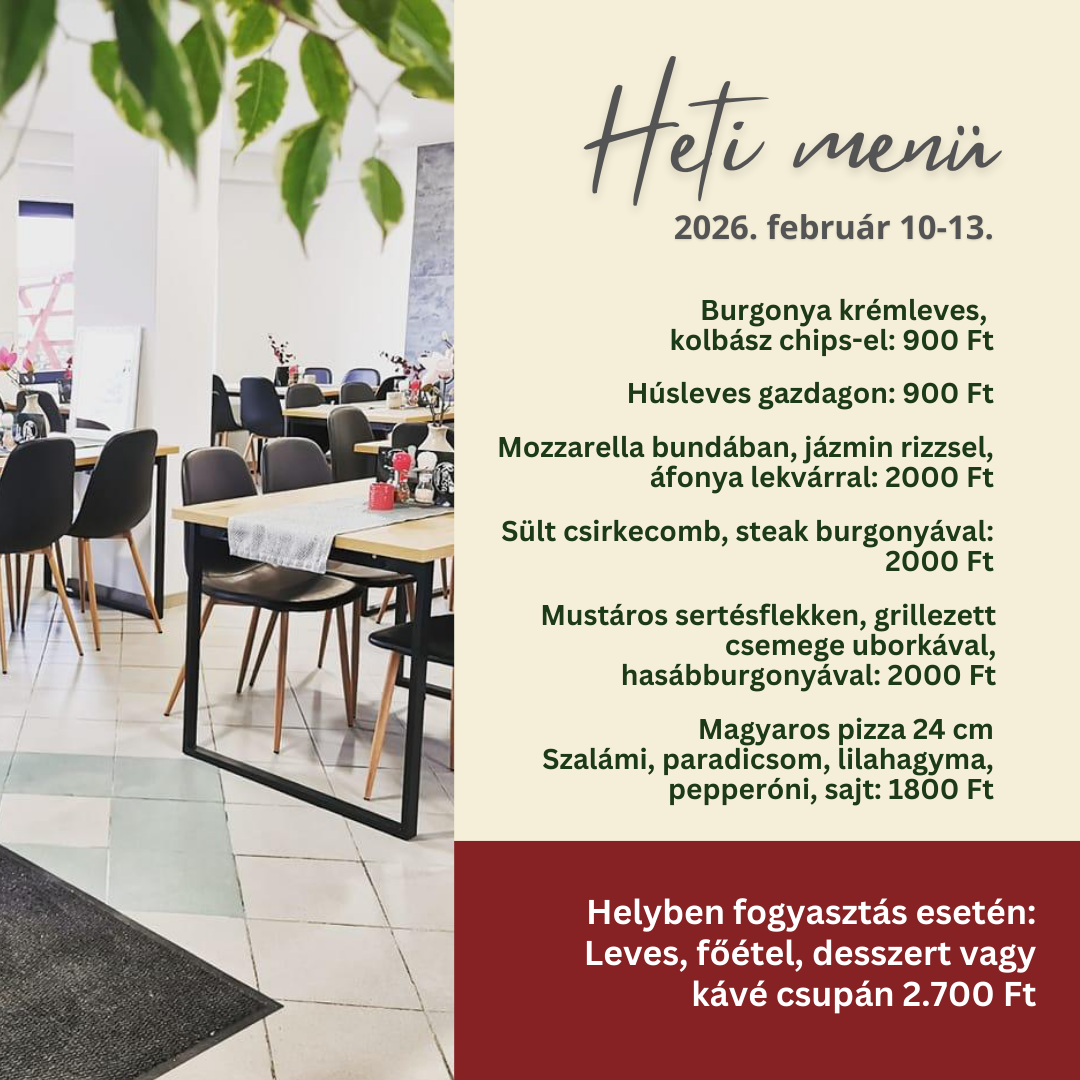 Éttermünk helyszínéül szolgálhat családi, baráti összejöveteleknek vagy randevúknak. Az ételek választéka nem hagy kivetni valót maga után, ahogyan az ízek sem! Vendégeinket folyamatosan meglepjük új fogásokkal, így lépést tartva a trendekkel! Vitathatatlanul családbarát hely vagyunk. A legkisebb vendégeink színezhetnek, társasozhatnak, vagy kikapcsolódhatnak játszóterünkön, amíg a finom falatok készülnek. A nagyobbakat sem hagyjuk szórakozási lehetőség nélkül, ők csocsózhatnak!
